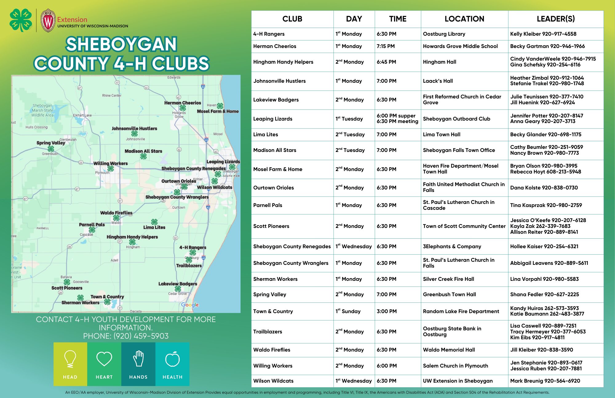 4-H is all about helping you find your spark, and we’re here to help you get started. Contact the Extension Sheboygan County Office at 920-459-5903, and we’ll connect your family with clubs that fit your interests.