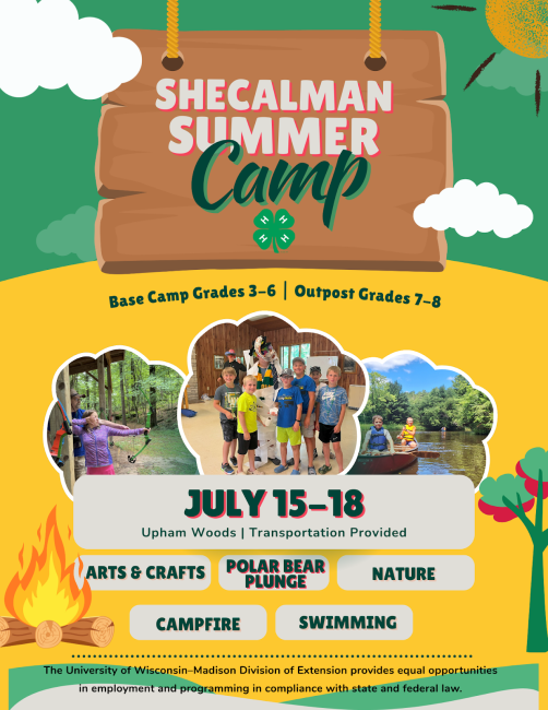 Four days and three nights of classic 4-H camp fun! Campers will enjoy: